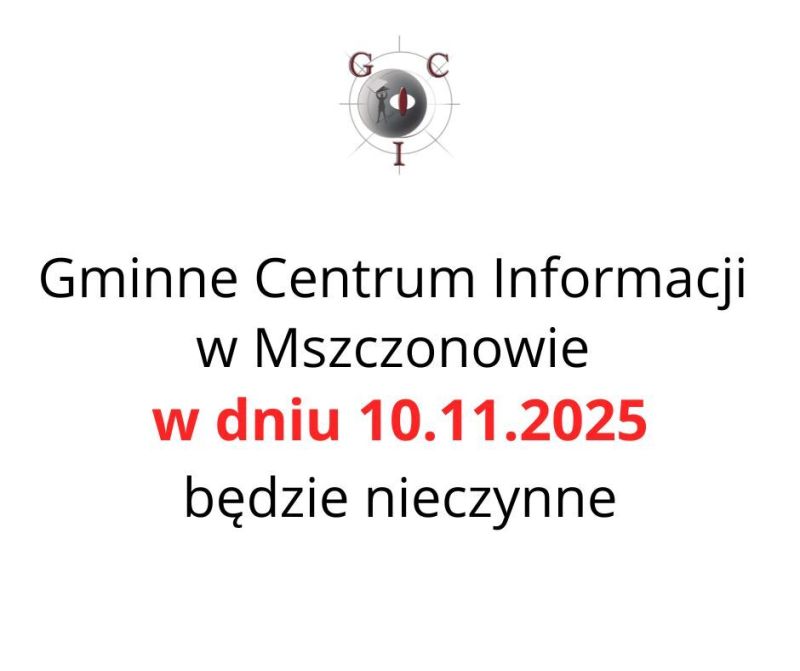 Gminne Centrum Informacji w Mszczonowie w dniu 10.11.2025r. będzie nieczynne.