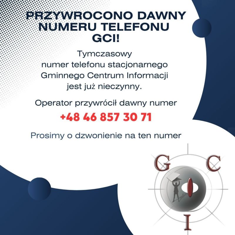 Z uwagi na zmianę operatora telefonicznego, informujemy o tymczasowym nowym numerze telefonu Gminnego Centrum Informacji w Mszczonowie: +48 46 832 95 15.