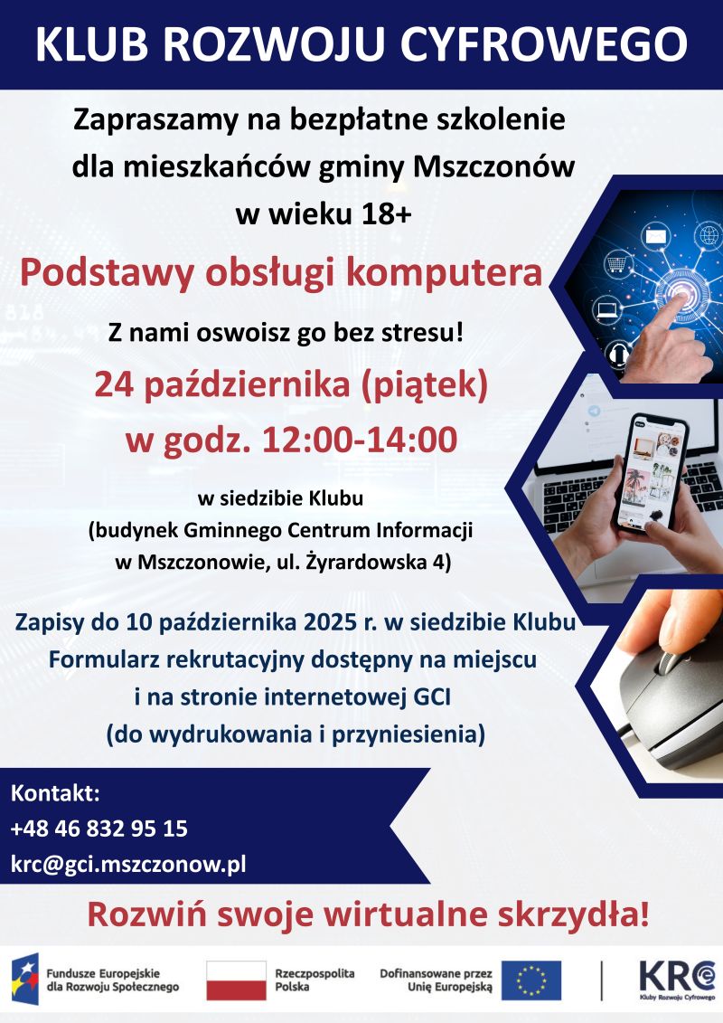 Od 1 sierpnia br. Gminne Centrum Informacji prowadzi w swojej siedzibie Klub Rozwoju Cyfrowego (KRC), w którym mieszkańcy mogą bezpłatnie poszerzać kompetencje związane z nowymi technologiami. Na jego prowadzenie gmina Mszczonów pozyskała dofinansowanie o wartości 465 492,50 zł w ramach Programu Fundusze Europejskie dla Rozwoju Społecznego 2021-2027 współfinansowanego ze środków Europejskiego Funduszu Społecznego Plus. Realizatorem projektu jest GCI, a całość potrwa do końca lipca 2027 r.